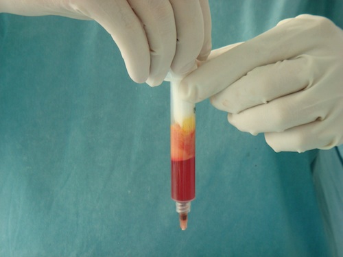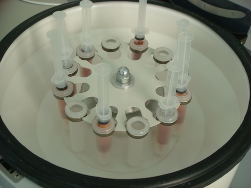 Для очистки жировой ткани шприцы с эксфузатом помещаются в центрифугу и центрифугируются в определенном режиме, в результате чего эксфузат разделяется на 3 фракции.
