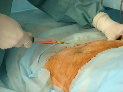 Предварительно зону забора жира инфильтрируют раствором, содержащим анестетик. Затем с помощью шприцев и специальных канюль (игл) с тупым концом и несколькими отверстиями производят забор жира.