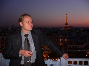 Вечером 30 сентября на Елисейских полях состоялась встреча спикеров симпозиума. П.Бадюл: доклад прочитан, шампанское выпито, завтра домой и на работу. Фото на память: Casoli Vincent, Pavlo Badyul, Beustes Stefanelli Matthieu.