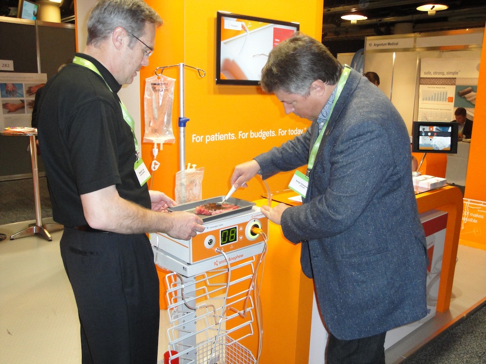ICCE, Cromdale Hall прошла выставка нового медицинского оборудования. У стенда компании smith & nephew можно было не только познакомиться, но апробировать преимущества усовершенствованной модели гидрохирургической системы VersaJet
