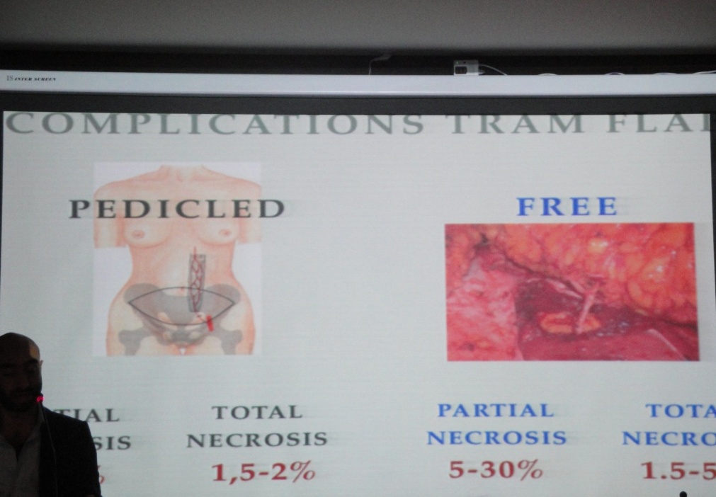 Вторая и третья части лекций были посваящены принятию “ключевого” решения для операции реконструкции – в один или два этапа; принципам выбора импланта и его покрытия; методикам применения аутотканей и лоскутов для восполнения объема железы и формированию инфрамаммарной складки. Специалисты клиники “Sandro Pertini” поделились опытом использования полиуретановых имплантов в реконструктивной и эстетической хирургии молочной железы. Не остался без ответа и вопрос в отношении осложнений при выполнении этой категории операций.