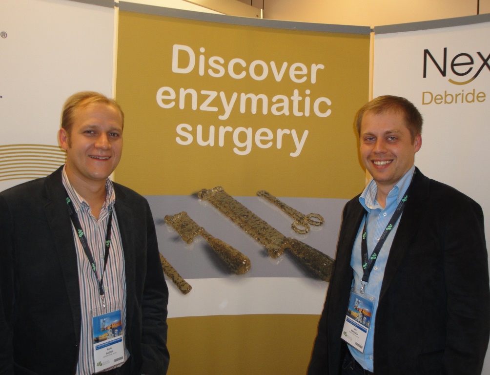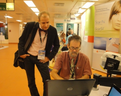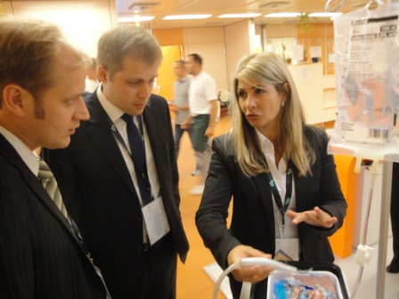 У стенда нидерландской компании HUMECAпрофессор Слесаренко С.В. обсудил достоинства новых технологических разработок в области пересадки кожи с managingdirector HUMECA TheoA.M. Klijn, которые позволяют более эффективно использовать донорские ресурсы кожи как пластического материала, а также и возможностях внедрения этих технологий в Украине.