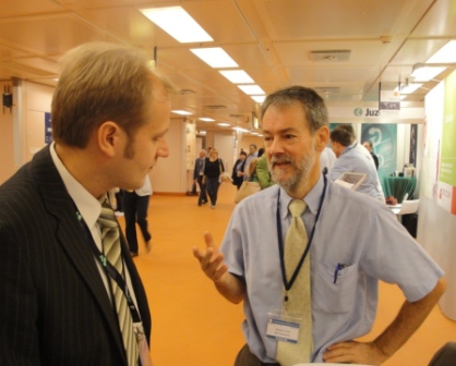 У стенда британской компанииMOORInstruments Ltd с dr. RodneyGushdr. Павел Бадюл аргументированно обменивался опытом относительно возможных пределов исследования различных тканей человека в зависимости от массы тела и толщины покровных тканей. Демонстрация работы нового гидрохирургического режущего инструмента Versajet II компании Smith&Nephew.