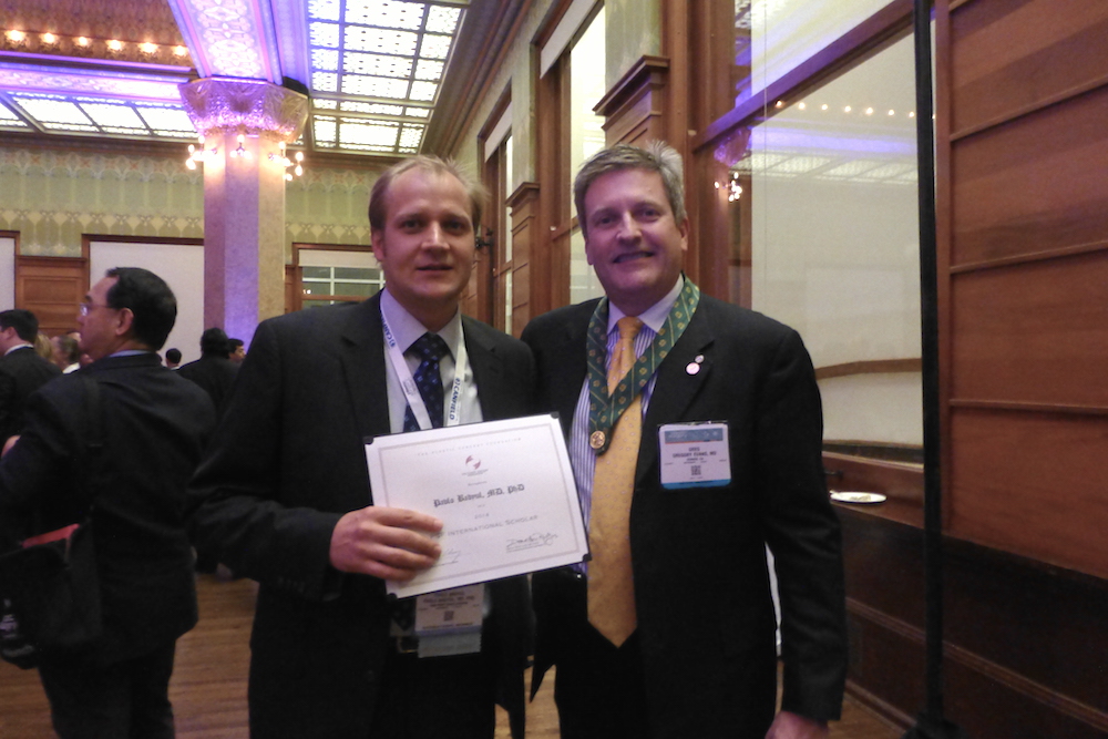 Презентация посвященная применению Google glass в пластической хирургии на стенде PRS journal. Фото на память с главным редактором журнала PRS: Pavlo Badiul & Rod J. Rohrich.