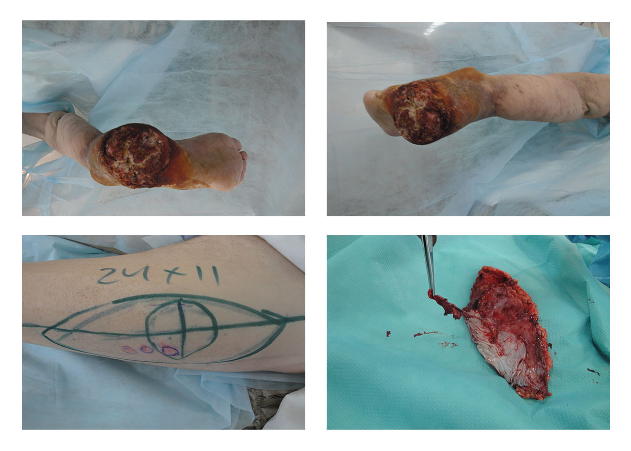 Первая пересадка в нашей клинике свободного перфорантного передне-латерального лоскута бедра для реконструкции пятки.
