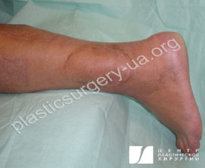 Рис. 7. Вид голени через 2 года после хирургического удаления новообразования и реконструкции раневого дефекта перфорантным лоскутом.