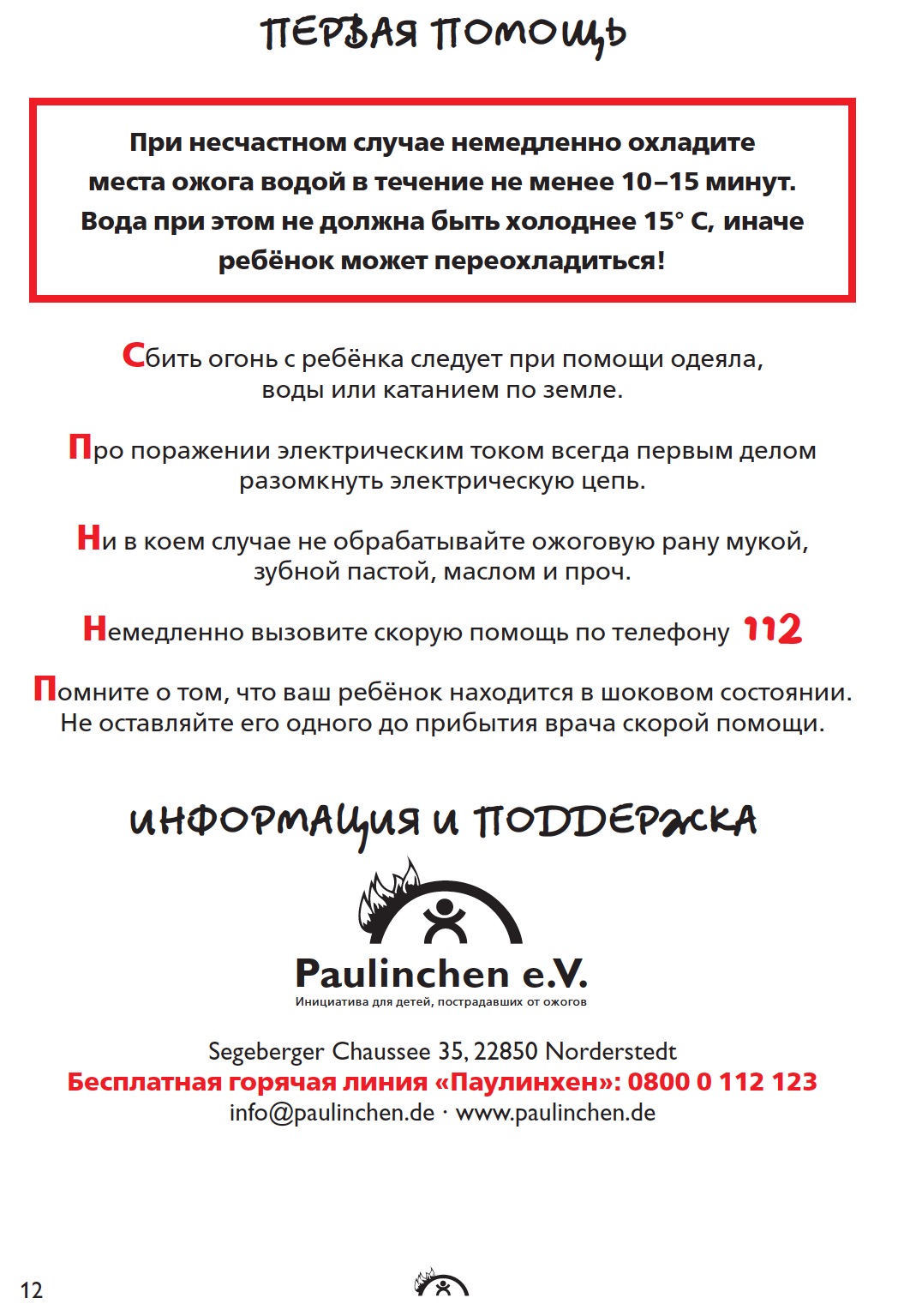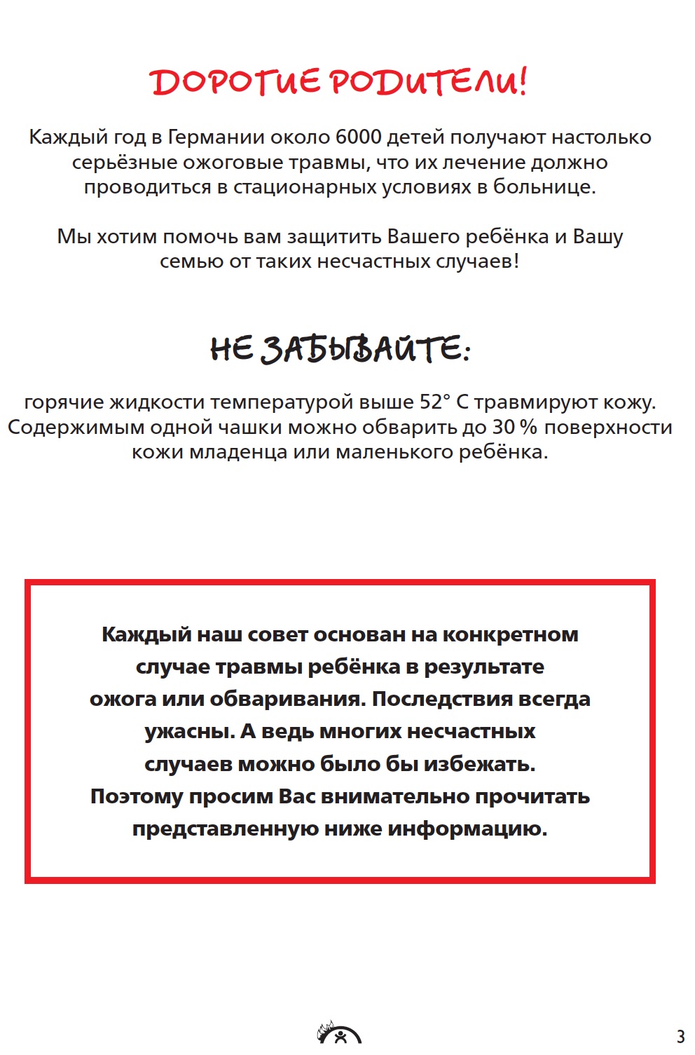 Представленная ниже брошюра переведена на несколько языков и представлена во многих странах, так как проблема детских ожогов актуальна во всем мире.