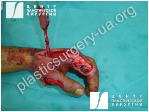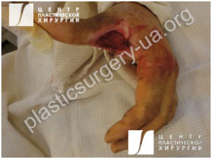 Рис. 7. Поврежденная кисть после удаления нежизнеспособных тканей.
