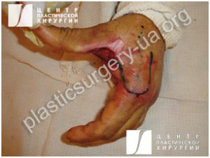 Поэтому необходимо, что бы перемещенные в область раневого дефекта лоскуты были схожи по структуре и окраске с окружающими тканями, желательно что бы они имели соответствующий по толщине слой гиподермы и не изменяли контуры кисти, как это встречается при пересадке комплексов тканей из отдаленных участков тела.