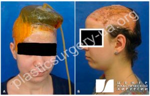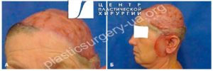 Наводимо власні результати застосування комбінованих способів пластичної реконструкції у 4 пацієнтів з великими дефектами шкіри волосяної частини голови різного генезу. В усіх випадках отримано