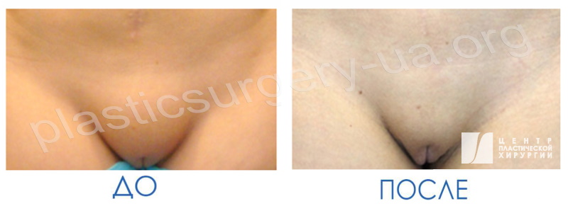 Скарги на надмірні розміри малих статевих губ, затруднення при носінні одягу. Виконано пластичне зменшення малих статевих губ.