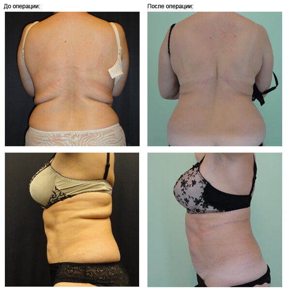 Виконано ліпосакцію з усуненням птозованої шкіри спини (дермоліпектомія).