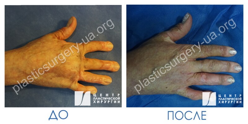 Пацієнтка раніше звернулася до нашого центру з контрактурою, викликаною післяопіковими рубцями правого пензля у жінки 52 років.