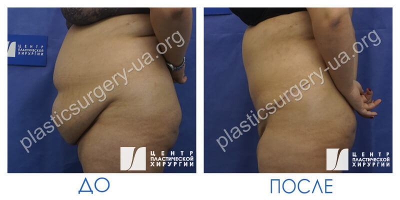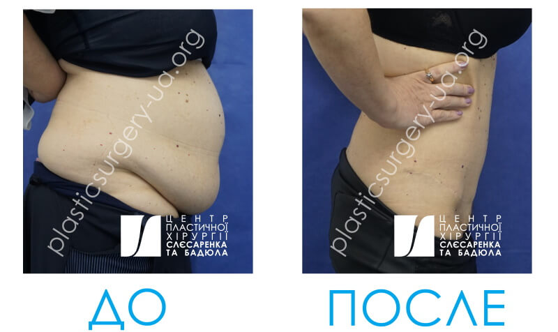 Аліментарне ожиріння. Виконано ліпосакцію передньої черевної стінки та фланків з абдомінопластикою.