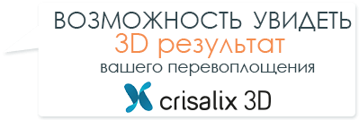 У Центрі пластичної хірургії ви ще до операції зможете побачити, як виглядатиме ваше нове тіло. Ваш лікар зробить 3 фотографії (ліворуч, спереду та праворуч) та завантажить їх у сучасну спеціалізовану програму Crysalix для 3D-моделювання. За кілька хвилин на екрані з’явиться точна 3D модель вашого тіла до і після пластики.